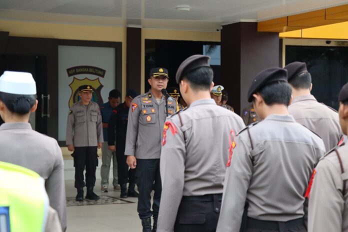 Kegiatan apel kesiapan berlangsung di Mapolda Kep. Bangka Belitung dipimpin Karendalopsresta Pangkalpinang Kompol Toni Susanto dan diikuti personel Polda dan Polresta yang terlibat pengamanan