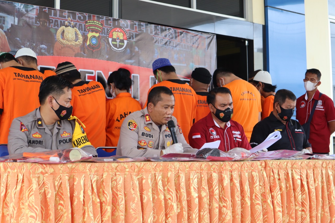 Konferensi pers dipimpin langsng oleh Kapolres Pangkalpinang AKBP Dwi Budi Murtiono, S.IK, M.H yang didampingi Kabag Ops Polres Pangkalpinang KOMPOL Andre Eko Setiawan, SH,S,IK, Kasat Res Narkoba IPTU Astriantomi, S,H, dan  Kasi Humas Polres Pangkalpinang AKP Agus Widodo, dengan mengundang rekan wartawan media cetak / online yang ada di Kota Pangkalpinang.