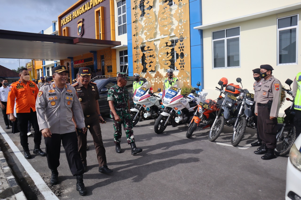 Usai melakukan apel bersama, Kapolres Pangkalpinang bersama Forkopimda Kota Pangkalpinang melakukan pengecekan kesiapsiagaan sarana dan prasarana penanggulangan bencana yang dimiliki Dinas dan Instansi terkait di Kota Pangkalpinang.