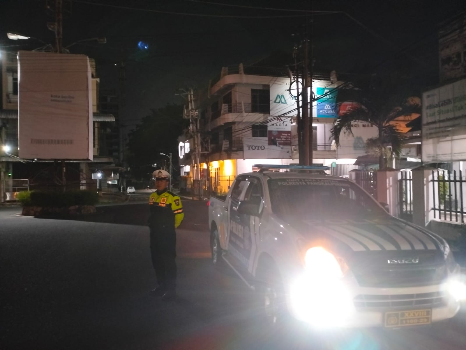 Patroli biru sat lantas Polresta Pangkalpinang malam ini dilaksanakan seputaran jalan raya Jendral Sudirman dan jalan Pegadaian Kota Pangkalpinang. Personel yang melaksanakan patroli terdiri dari 2 personel yaitu Bripka Agus Sudri dan Bripka Jeni.