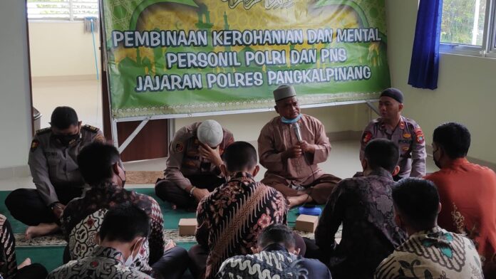 Humas Polres Pangkalpinang – Dalam rangka membentuk karakter personel Polri, khususnya Polres Pangkalpinang sekaligus alat kontrol diri terhadap anggotanya, Bag SDM Polres Pangkalpinang melaksanakan program Pembinaan Rohani dan Mental (Binrohtal) kepada anggota berlangsung setelah apel, Kamis (6/22).