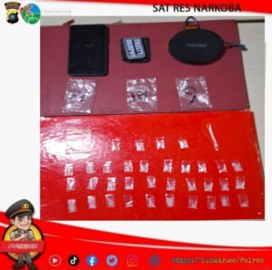 Barang bukti yang berhasil diamankan berupa (satu) bungkus plastik strip bening ukuran sedang yang didalamnya berisikan narkotika jenis sabu, 34 (tiga puluh empat) bungkus plastik strip bening ukuran kecil yang didalamnya berisikan narkotika jenis sabu, 1 (satu) buah pipet plastik, 3 (tiga) buah plastik strip bening kosong, 1 (satu) buah timbangan digital, 1 (satu) buah tas kecil warna hitam dan 1 (satu) unit handphone merk Realme., tutur AKP Antoni.
