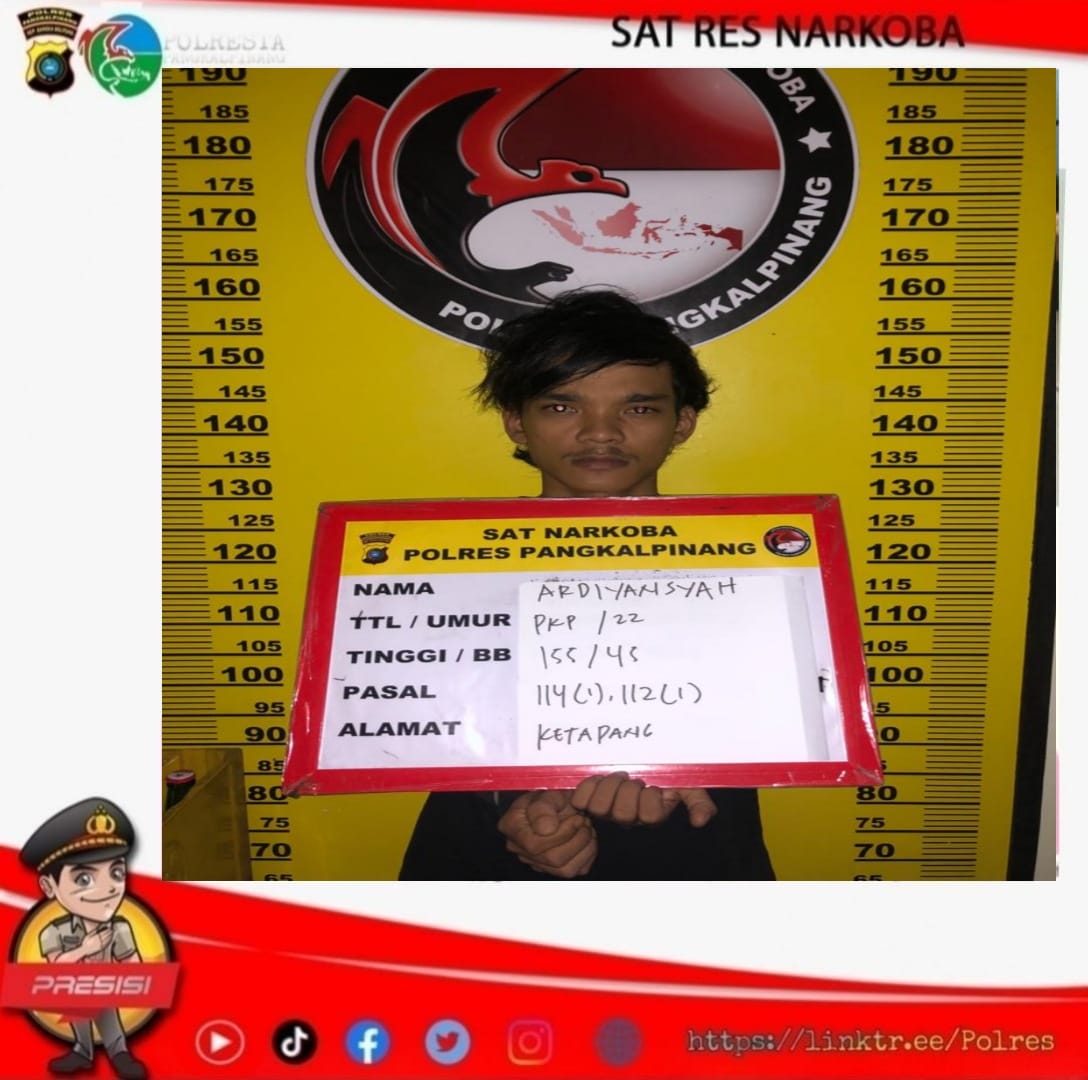Tersangka penyalahgunaan narkoba berinisial AR umur 22 tahun asal Kelurahan Ketpang kecamatan Pangkalbalam Kota Pangkalpinang.