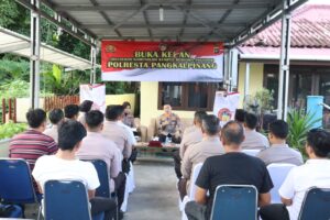 Humas Polresta Pangkalpinang Id – Kapolresta Pangkalpinang KBP Gatot Yulianto, S.I.K M.HP, pimpin kegiatan program buka kran (blusukan komunikasi kumpul bersama anggota) bersama personel Polisi sektor pengawasan Pangkalbalam Kota Pangkalpinang. Selasa (13/6).
