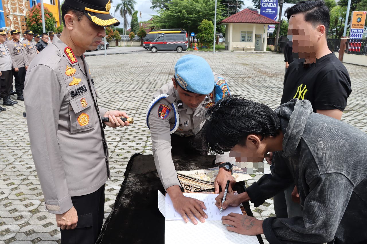 “Pagi ini kita sudah melaksanakan deklarasi bagi adik-adik tersebut, agar tidak mengulangi perbuatannya lagi,” ungkap Kapolresta Pangkalpinang Kombes Pol Gatot Yulianto.