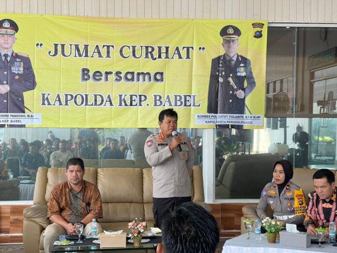 Bertempat di PT DAK dan Perkapalan Air Kantung unit Selindung Kota Pangkalpinang dilaksanakan jumat curhat bersama Kapolda Kep. Bangka Belitung diwakilkan oleh Dir Binmas Polda Kep Babel, Kombes Pol Rudi Hermanto, S.I.K.