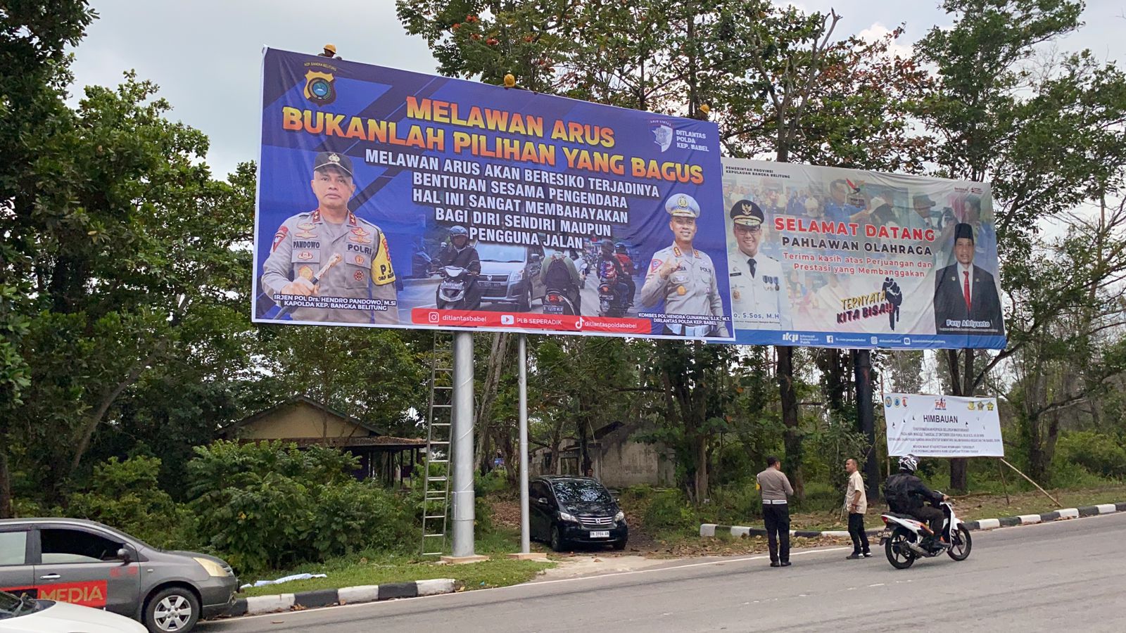 Sementara itu, spanduk himbauan yang dipasang oleh Direktorat Lalu Lintas Polda Babel ini berisi pesan tentang bahayanya berkendara melawan arus.