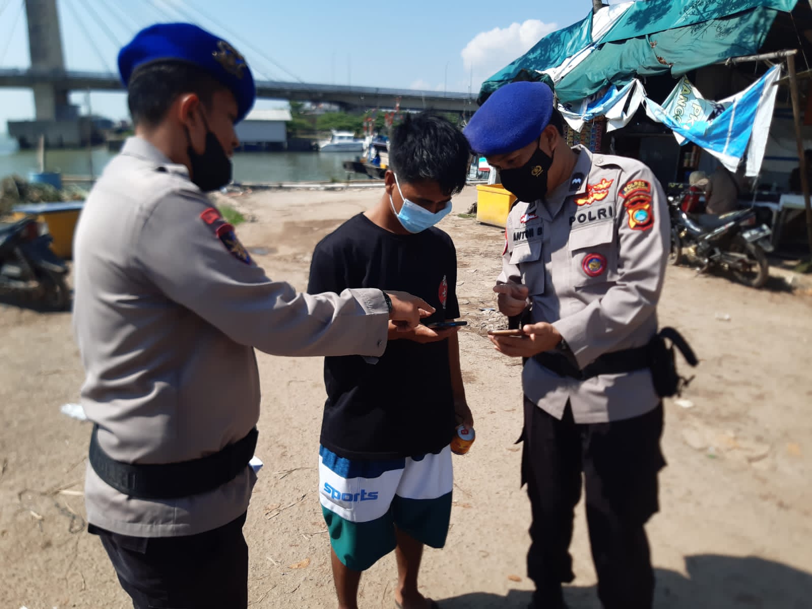 Kali ini, diseputaran dermaga PPI Pangkalbalam, Personel Polair Polres Pangkalpinang mensosialisasikan aplikasi Peduli Lindungi kepada masyarakat dan nelayan setempat.