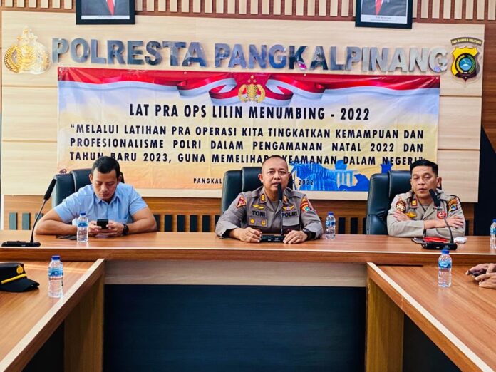 Ps. Kapolresta Pangkalpinang AKBP Dwi Budi Murtiono, S.IK M.H melalui Ps. Kabag Ops Polresta Pangkalpinang AKP Toni Susanto, S.H, dalam sambutannya menyampaikan bahwa operasi lilin Menumbing ini merupakan kegiatan rutin setiap tahunnya dan kita tidak boleh Underestimate bahkan dengan adanya operasi ini diminta seluruh personel operasi yang terlIbat semakin waspada menghadapi ancaman dalam bentuk apapun terutama ancaman terhadap keselamatan dan ancaman gangguan Kamtibmas lainnya.