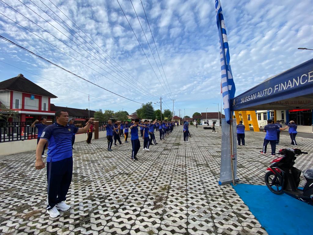 Tampak seluruh personel dengan semangat mengikuti setiap gerakan yang dipimpin oleh instruktur senam.