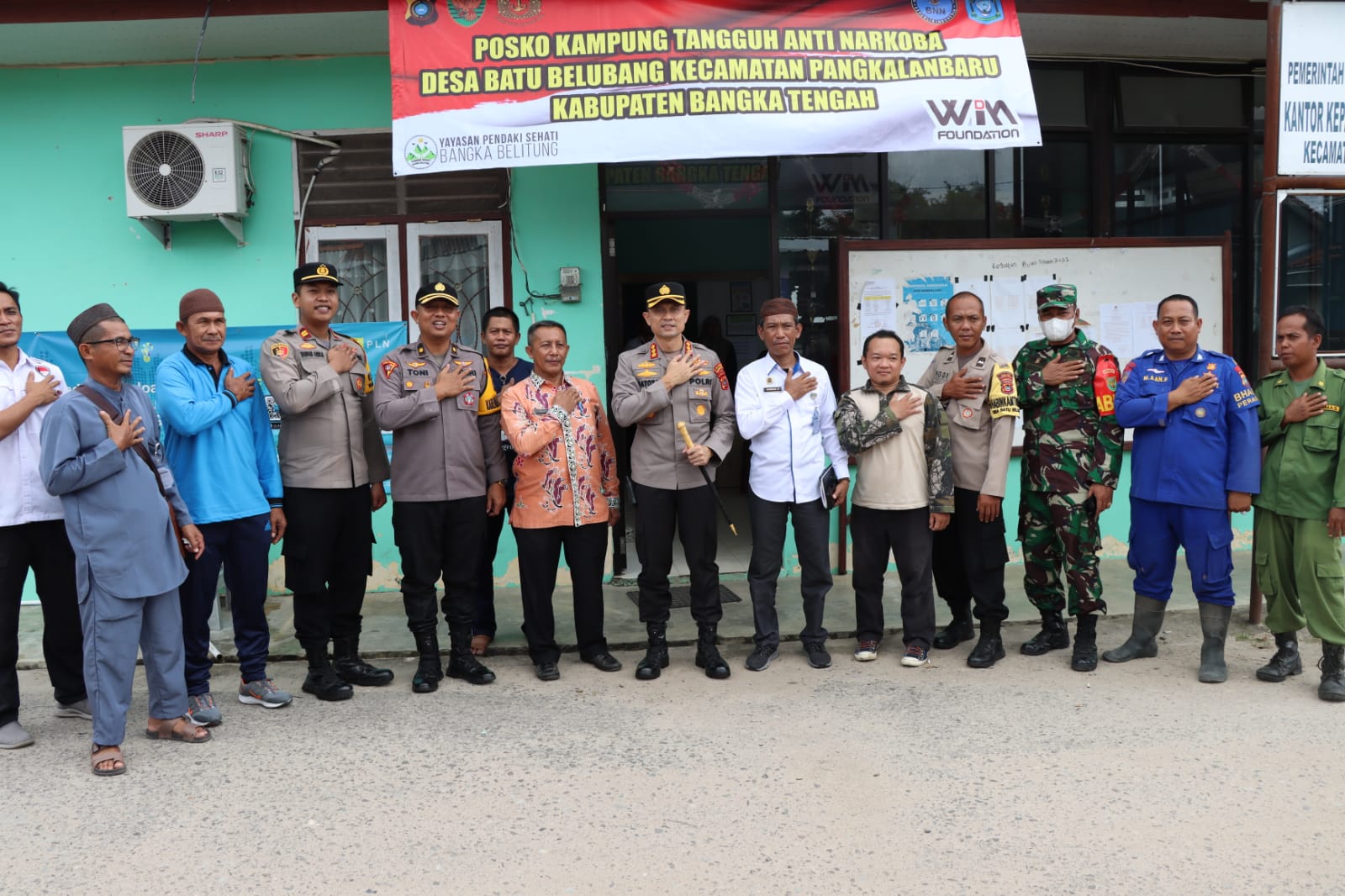 Humas Polresta Pangkalpinang Id – Kapolresta Pangkalpinang KBP Gatot Yulianto S.I.K M. HP, meresmikan kampung tangguh anti narkoba di Desa Batu Belubang Kecamatan Pangkalan Baru. Jumat (10/2).