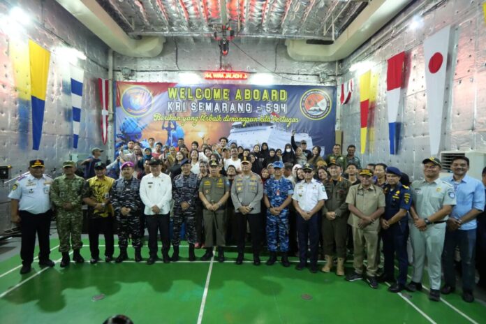 Belitung – Pelepasan peserta mudik gratis Lebaran 2026 menggunakan kapal perang TNI AL, KRI Semarang, di Pelabuhan Tanjung Batu, Desa Pegantungan, Kecamatan Badau, Kabupaten Belitung, berlangsung pada Jumat (27/3/2026) sekitar pukul 11.00 WIB.