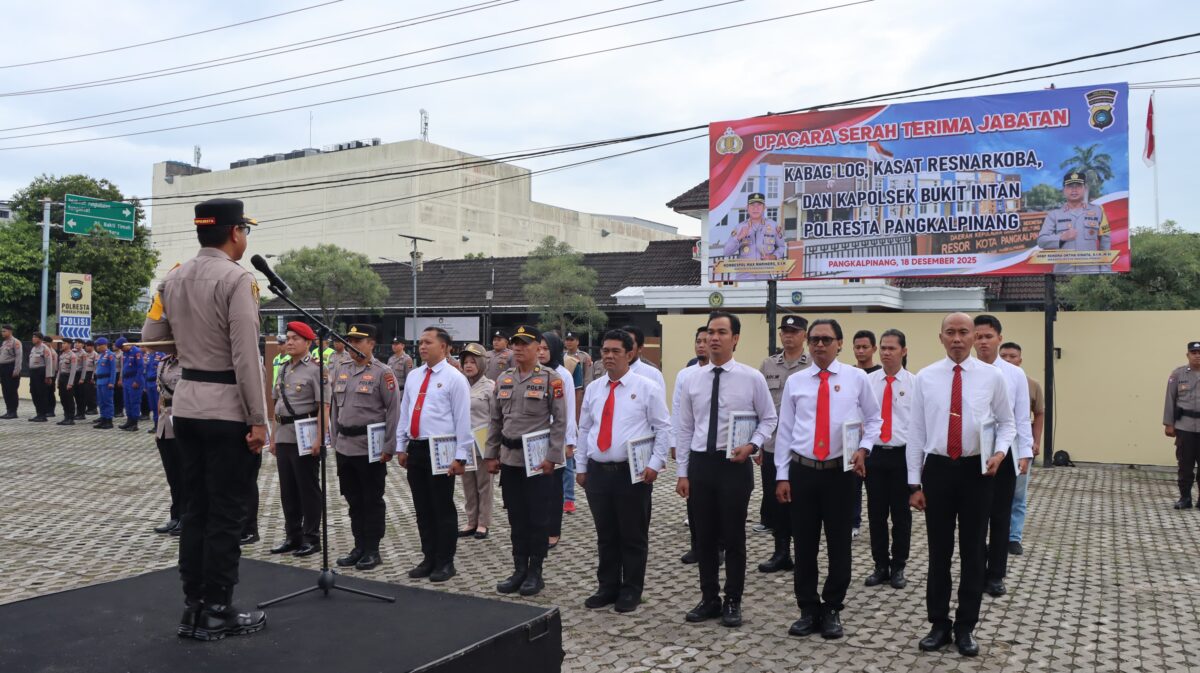 Dalam upacara tersebut, sejumlah jabatan strategis resmi diserahterimakan, di antaranya jabatan Kabag Log Polresta Pangkalpinang dari AKP Mursalim kepada AKP Candra Harsono. Selanjutnya, jabatan Kasat Resnarkoba diserahterimakan dari AKP Raden Hasir, S.H., M.H. kepada AKP Yandri C. Akip, S.H., M.H. Sementara itu, jabatan Kapolsek Bukit Intan diserahkan dari Kompol Yosyua Surya Admaja, S.I.K., M.H. kepada AKP Epriansyah, S.H. dan jabatan Kasikum dari AKP Candra Harsono diserahkan kepada Iptu Lilis, S.H.