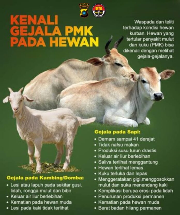 HomeBeritaKENALI GEJALA PMK PADA HEWAN TERNAKBeritaKENALI GEJALA PMK PADA HEWAN TERNAKBy @dminAugust 10, 2022010057ShareFacebookWhatsAppTelegram Jangan panik dan tetap tenangShareFacebookWhatsAppTelegram Previous articleAPA PENYEBAB PMK TERHADAP HEWAN TERNAKNext articleKapolres Pangkalpinang, Selamat Hari Pramuka Ke 61 Tahun 2022.@dminhttps://polrestapangkalpinang.idRELATED ARTICLES BeritaPeduli Korban Kebakaran, Kapolresta Pangkalpinang Turun Langsung Beri Bantuan August 14, 2024 BeritaKunjungan Kerja Perdana Kapolda Kep. Bangka Belitung Ke Polresta Pangkalpinang August 14, 2024 BeritaPolresta Pangkalpinang Terima Kunjungan Ombudsman RI, Cek Kualitas Fungsi Pelayanan Publik August 8, 2024 LEAVE A REPLY Cancel replyComment:Please enter your comment! Name:*Please enter your name here Email:*You have entered an incorrect email address!Please enter your email address here Website: Save my name, email, and website in this browser for the next time I comment. KAPOLRESTA PANGKALPINANGKOMBES POL MAX MARINERS, S.I.K., M.HMost PopularPolresta Pangkalpinang Gelar Sosialisasi DIPA/RKA-KL, Pakta Integritas, dan Penyusunan Rendisgar T.A. 2026 January 9, 2026 Panen Raya Jagung Serentak Kuartal I 2026, Wujud Nyata Dukungan Ketahanan Pangan January 8, 2026 Mediasi Laka Lantas di Polsek Gerunggang, Dua Pihak Sepakat Selesaikan Secara Kekeluargaan January 7, 2026 Kapolresta Pangkalpinang Pimpin Pengamanan Aksi Damai Aliansi Rakyat Babel Bersatu January 5, 2026 Load moreRecent Comments