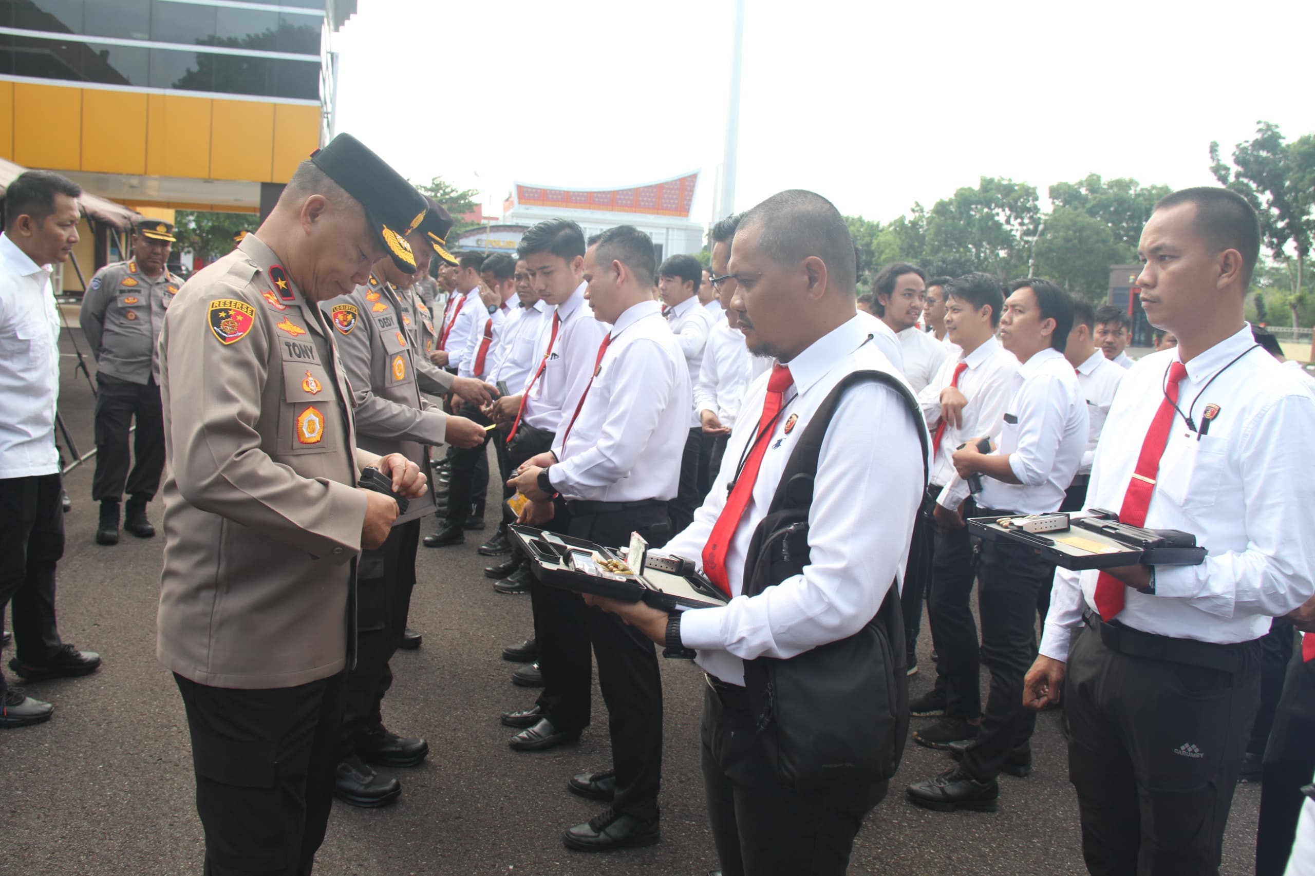 Wakapolda Bangka Belitung Brigjen Pol Tony Harsono didampingi Irwasda Polda Bangka Belitung memimpin apel pemeriksaan Senjata Api (Senpi) dan Amunisi anggota Polda Bangka Belitung, Senin (23/12/24).