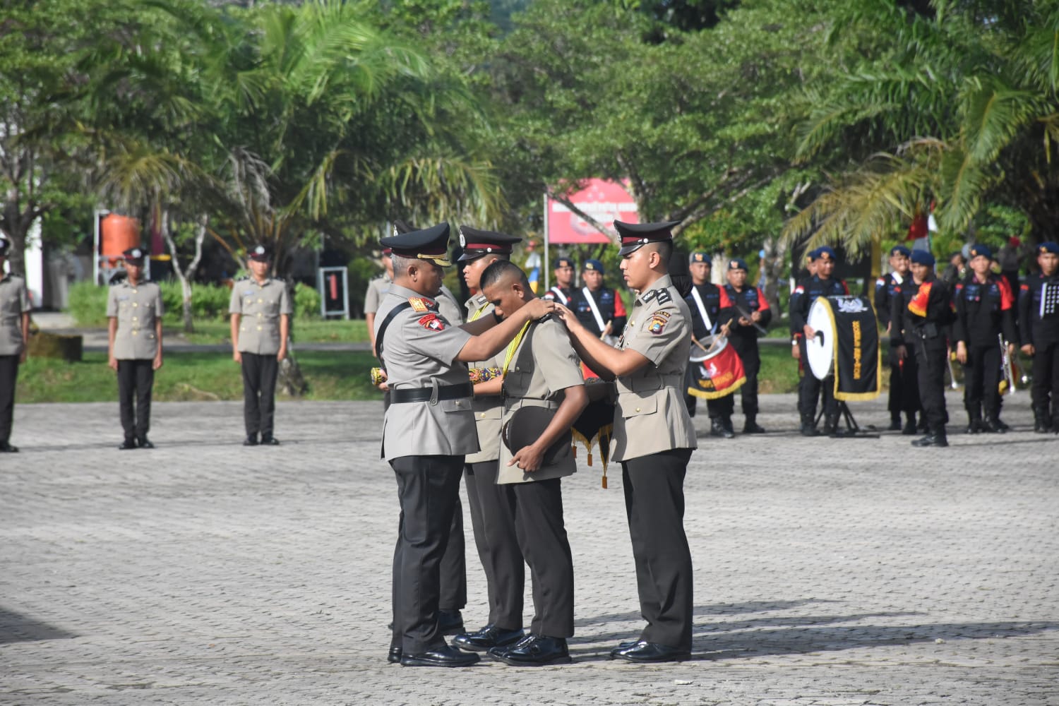 “Satu pesan saya, jadilah Polisi teladan yang dapat mengayomi masyarakat sebaik-baiknya. Perjalanan menjadi Polisi kemarin penuh perjuangan, jadi lakukanlah yang terbaik,”pesannya.