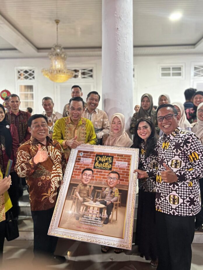 Sebagai bentuk apresiasi yang personal dan berkesan, Kapolresta Max Mariners memberikan cindera mata unik kepada Pj. Walikota M. Unu Ibnudin berupa sebuah karikatur.
