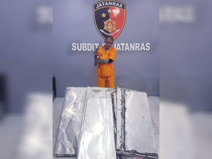 “Kini, pelaku dan barang bukti yakni 2 lembar plat aluminium dan 1 bilah parang sudah diamankan di Mapolda guna proses penyidikan lebih lanjut,”pungkasnya.