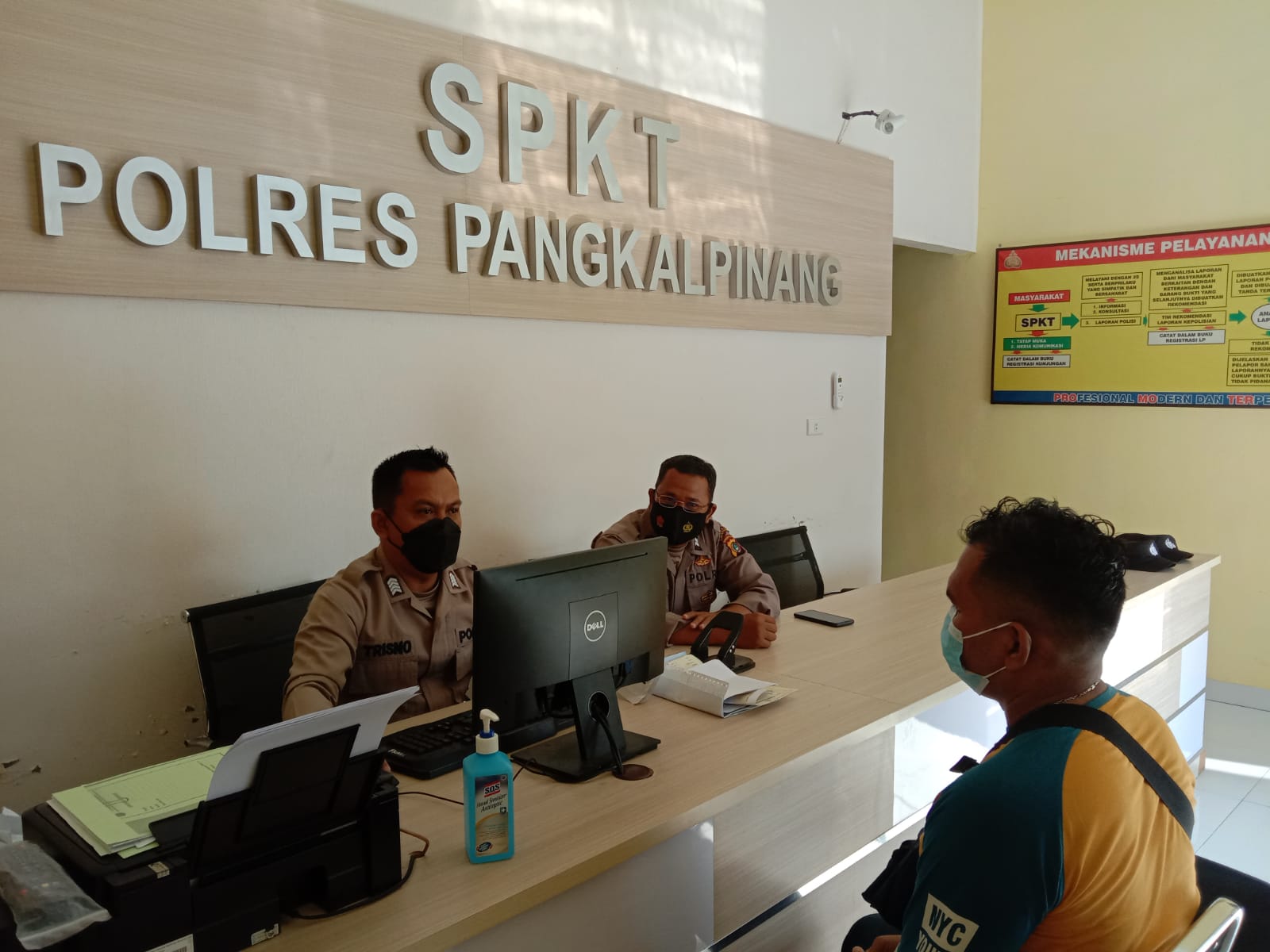 Pelayanan yang diberikan SPKT Polres Pangkalpinang ditengah pandemi, tetap mengedepankan protokol kesehatan yang ketat, kepada setiap masyarakat yang akan melapor wajib memakai masker, mencuci tangan serta menunggu ditempat yang telah disediakan.