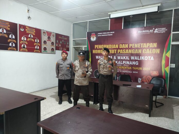 Humas Polresta Pangkalpinang Id – Personel OMP Menumbing – 2024 Polresta Pangkalpinang terus melakukan pengamanan kantor KPU dan Bawaslu Kota Pangkalpinang. Minggu (20/10).”