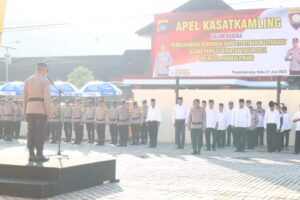 Tema apel Satkamling Tahun 2023 ” Pemeliharaaan Keamanan dan Ketertiban Masyarakat Jelang Pemilu Serentak Tahun 2024″.