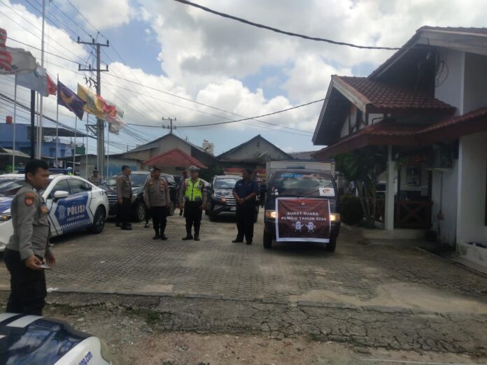 Humas Polresta Pangkalpinang Id – Personel Polresta Pangkalpinang melaksanakan Pengamanan kedatangan Logistik Surat Suara Yang Kurang / Rusak Tingkat Kota Pangkalpinang. Sabtu (27/1).