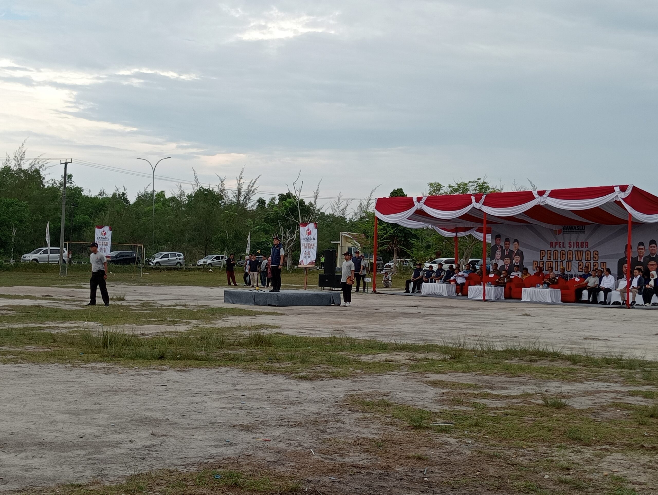 Humas Polresta Pangkalpinang Id – Untuk menyatakan kesiapan dalam mengawasi Pemilu 2024, Bawaslu Kota Pangkalpinang melakukan Apel Siaga Pengawasan Pemilu 2024 yang dilaksanakan di halaman GOR Sahabuddin Prov. Bangka Belitung Desa Padang Baru Kecamatan Pangkalan Baru. Kamis (23/11).