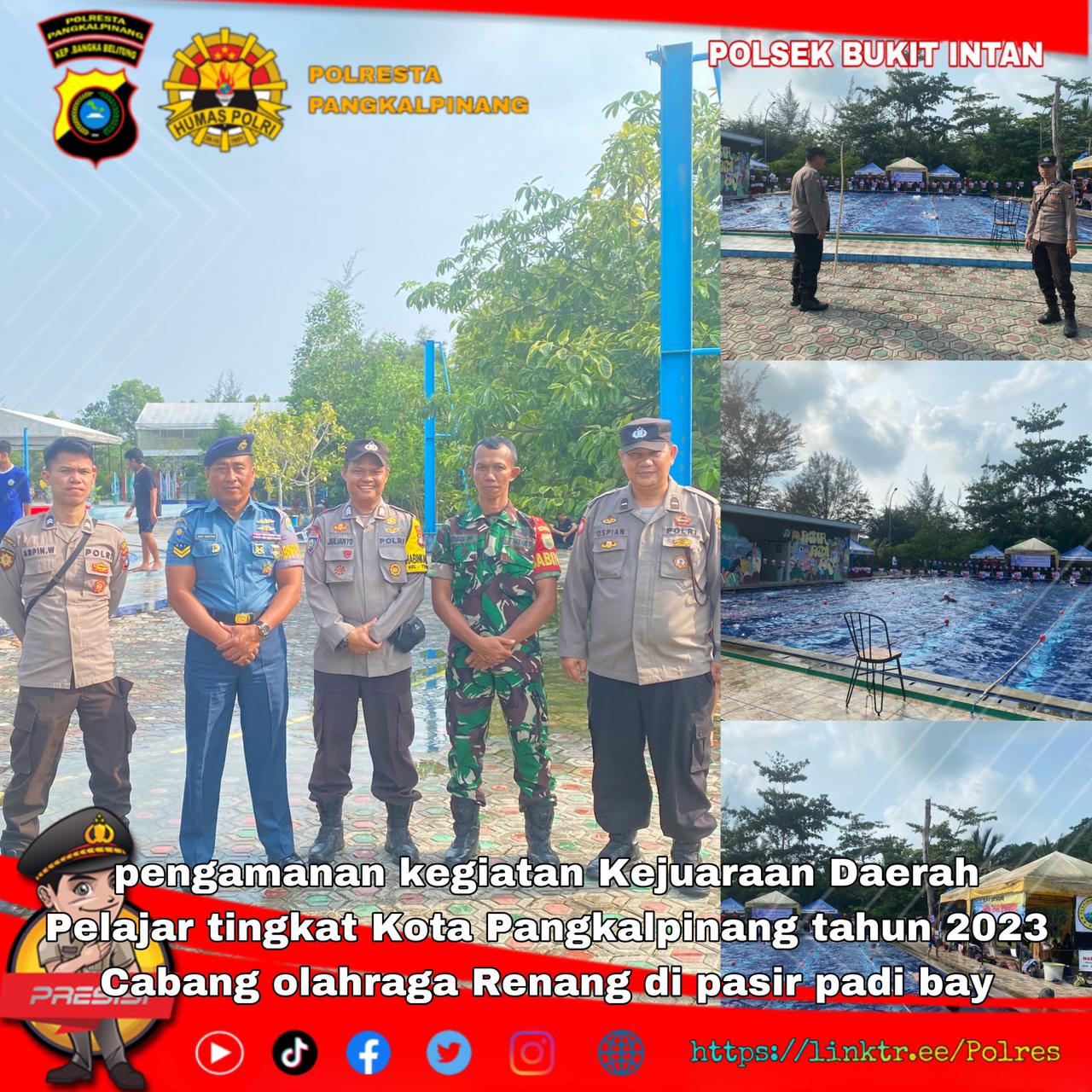 Humas Polresta Pangkalpinang Id -Personel Polresta Pangkalpinang laksanakan Kejuaraan Daerah (kejurda) Pelajar tingkat Kota Pangkalpinang tahun 2023 Cabang olahraga Renang, yang bertempat di Pasir Padi bay Jalan pasir padi Kelurahan Temberan Kecamatan Bukit Intan Kota Pangkalpinang, Selasa (30/5).