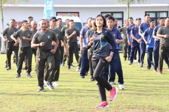 Nampak semangat, anggota TNI POLRI dan Pemerintah Daerah, berbaur dalam kegembiraan di acara olahraga bersama, ratusan anggota korps hijau doreng dan anggota korps seragam coklat, tampak sangat menikmati olah ra