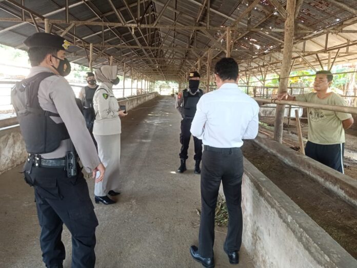 Dalam hal ini, personil Polres Pangkalpinang turun langsung ke lapangan untuk memberikan himbauan dan sosialisasi terkait PMK kepada peternak. Personil menghimbau kepada peternak agar tetap waspada dan selalu menjaga kebersihan kandang serta rutin untuk menyemprot disinfektan di setiap kandang.