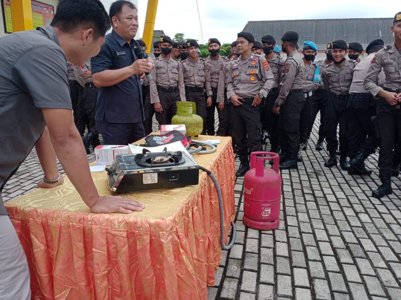 Humas Polres pangkalpinang Id – Usai apel pagi, personel Polres pangkalpinang mendapatkan arahan dan sosialisasi dari koperasi purna karyawan pertamina Kota Pangkalpinang mengenai cara aman dalam penggunaan regulator dan selang LPG di halaman Mapolres Pangkalpinang. Kamis (1/12).