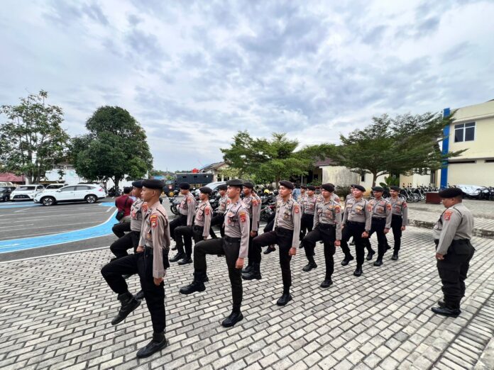 “Dalam pelaksanaan latihan personel melaksanakan gerakan jalan ditempat, latihan penghormatan, langkah tegap maju dan latihan gerak ditempat lainnya,” ungkap Ipda Akhmad Syawkani.