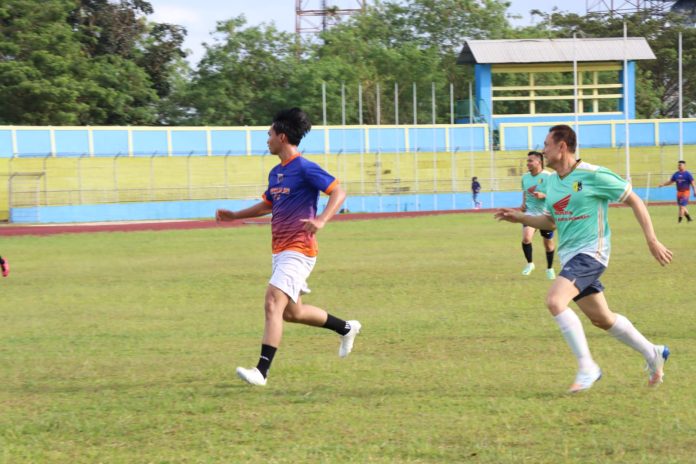 Humas Polresta Pangkalpinang Id – Personel Polresta Pangkalpinang menggelar pertandingan persahabatan bola kaki melawan wartawan (insan pers) di stadion Depati amir Pangkalpinang. Kamis Sore (23/2).