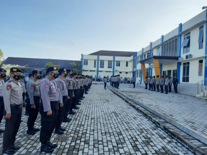 Humas Polres Pangkalpinang – WakaPolres Pangkalpinang KOMPOL Poltak Sintong Toar Purba, S.IK, memimpin apel pagi yang digelar di halaman Mapolres Pangkalpinang, Selasa (31/5).