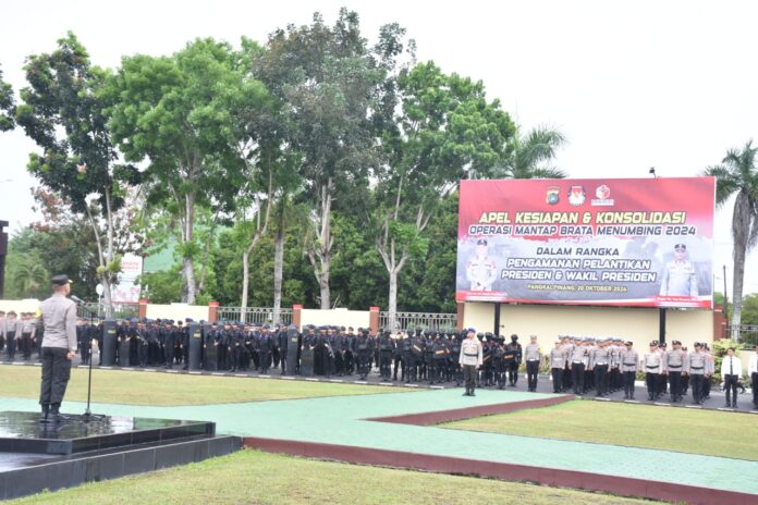 Kapolda Bangka Belitung Irjen Pol Hendro Pandowo memimpin apel kesiapan dan konsolidasi Operasi Mantap Brata Menumbing 2024 dalam rangka pengamanan pelantikan Presiden dan Wakil Presiden, Minggu (20/10/24) pagi.