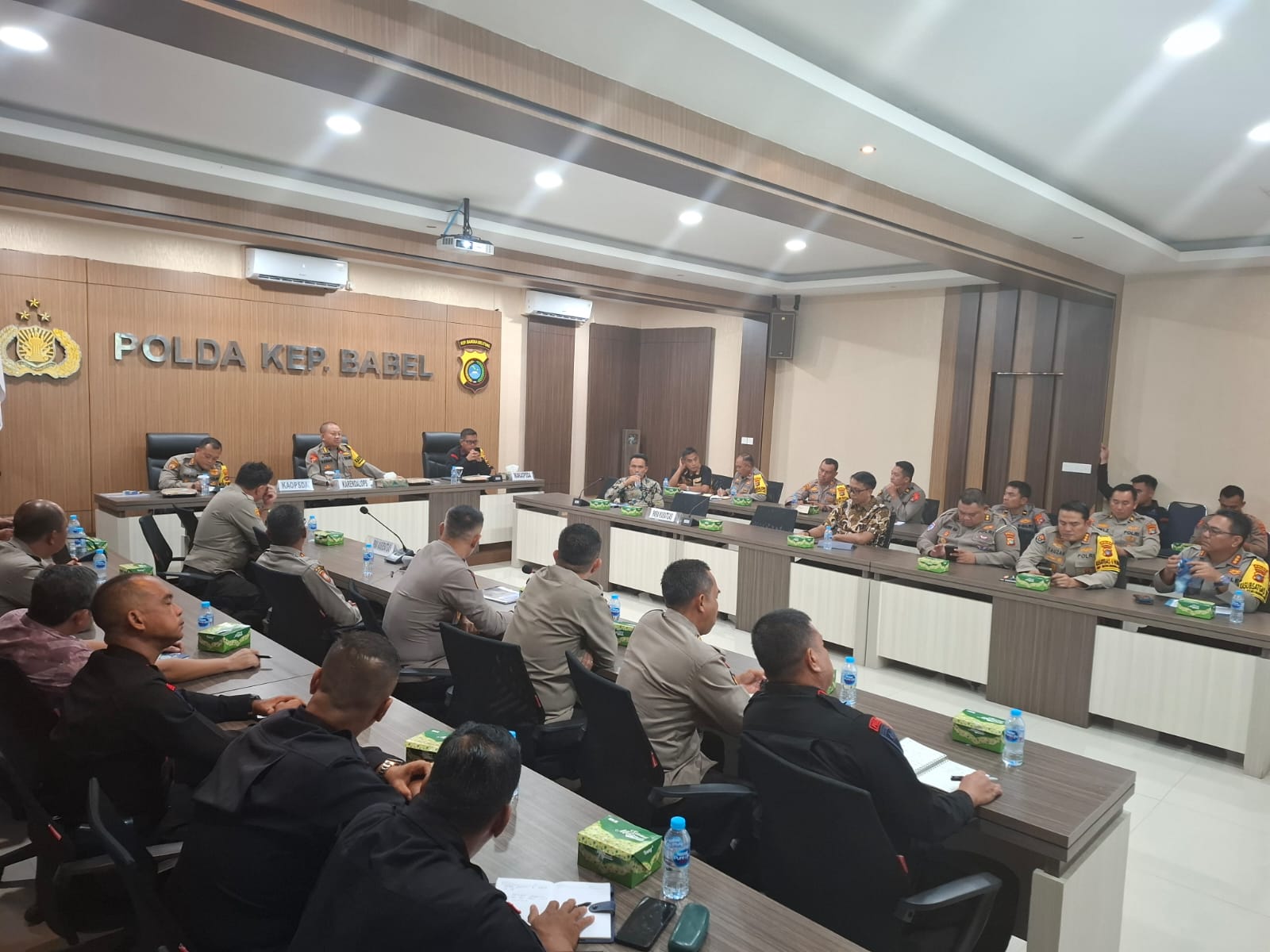 Polda Bangka Belitung menggelar rapat kesiapan rencana pengamanan Pilkada Serentak 2024 tahapan debat dan penyampaian visi dan Misi Calon Kepala Daerah Provinsi Kepulauan Bangka Belitung.