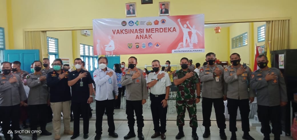 “Upaya dari Polres Pangkalpinang dengan mengikutsertakan peserta Anak didik umur 6 s.d 11 tahun didampingi oleh guru dan wali murid dengan stok Vaksin Sinovac sebanyak 257(dua ratus Lima puluh tujuh) Dosis, dengan mengikutsertakan nakes dari Puskesmas Girimaya dan Nakes Klinik Dokkes Polres Pangkalpinang”.