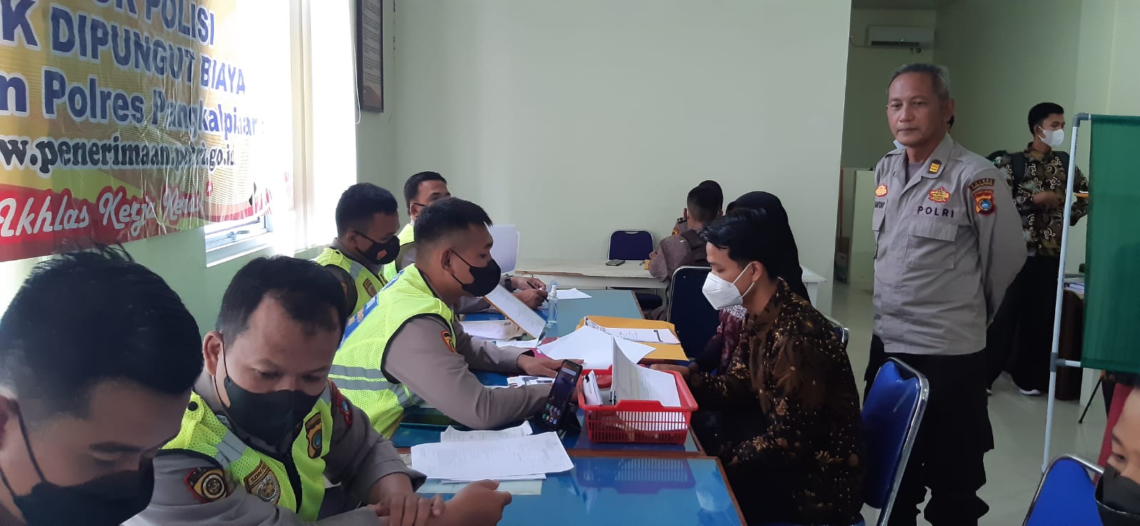 Hari ke enam peserta calon anggota Polri yang mendaftarkan diri sebanyak kurang lebih 30 calon, yang melakukan pemberkasan serta verifikasi data diri masing-masing peserta, Rabu (06/04/2022)