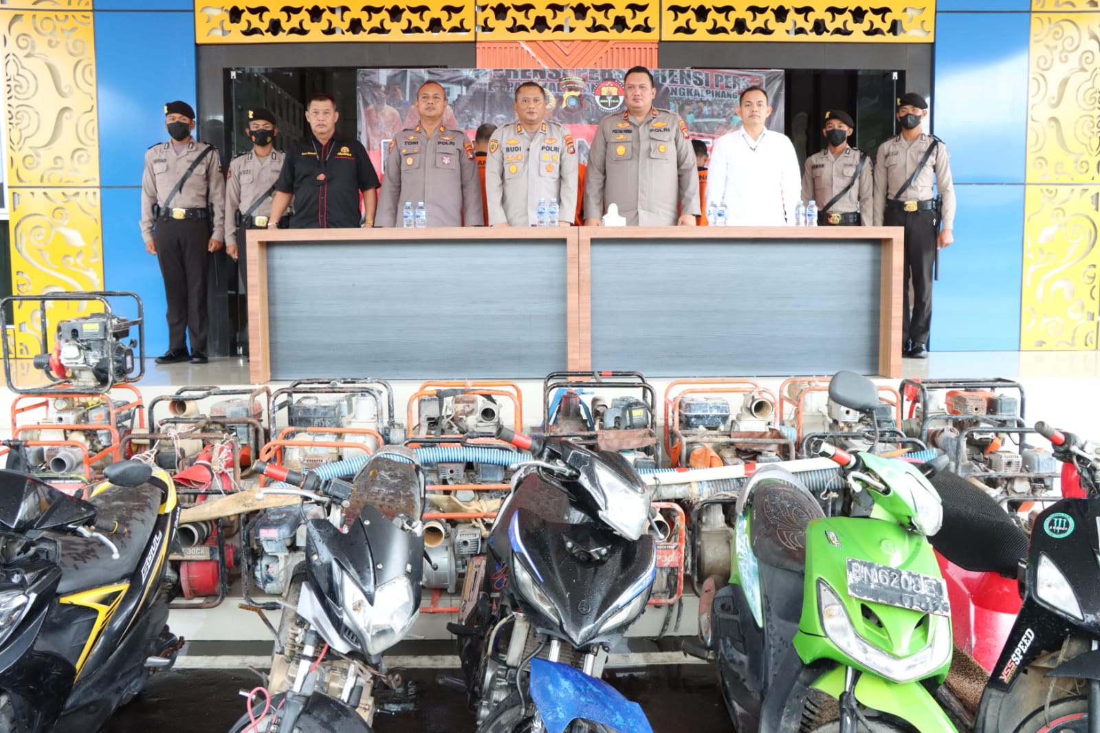 Pelaksanaan konferensi pers dipimpin langsung Kapolres Pangkalpinang AKBP Dwi Budi Murtiono, S.IK M.H, didampingi Wakapolres Pangkalpinang KOMPOL Poltak S.T. Purba, S.IK, Kasat Reskrim AKP Adi Putra, S.H M.H, dab Kasi Humas AKP Agus Widodo.