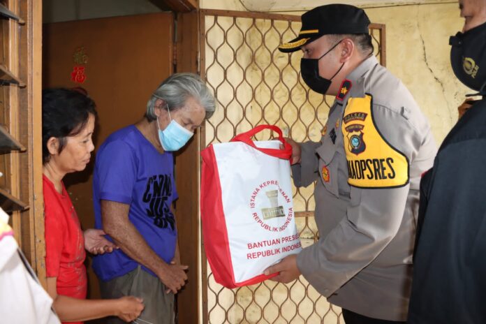 Pemberian bantuan sembako sebanyak 200 paket dari Presiden RI Bp. Joko Widodo kepada masyarakat kota pangkalpinang langsung didistribusikan melalui personel Bhabinkamtibmas kepada masyarakat yang kurang mampu di kelurahan / binaannya.