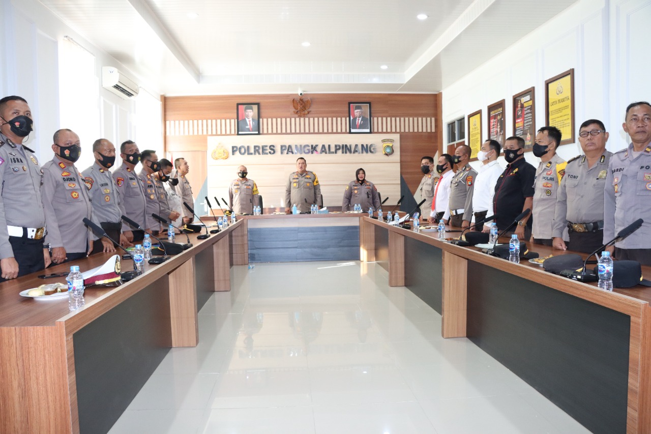 Kegiatan Zoom Meeting dipimpin Wakapolres Pangkalpinang KOMPOL Poltak S.T. Purba, S.I.K didampingi Kabag SDM KOMPOL Remiwati dan Kapolsek Taman Sari KOMPOL Robby Nurdianto, S.H M.H, dan seluruh PJU Polres Pangkalpinang.