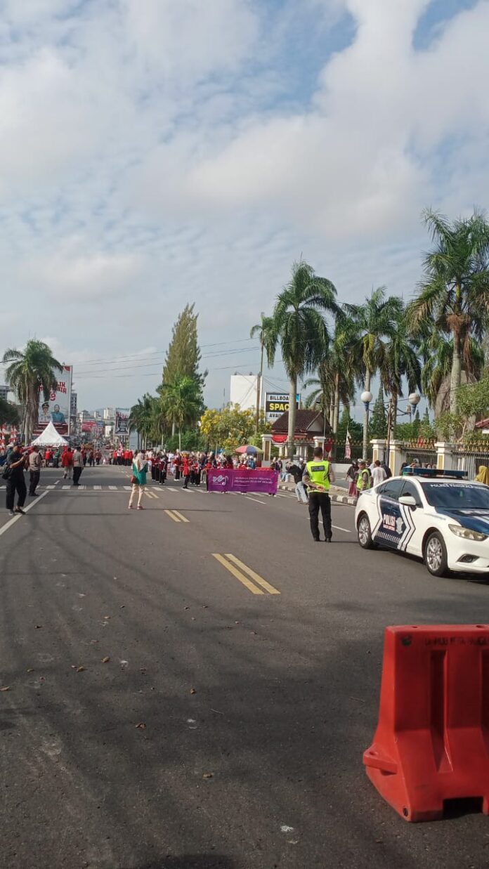 Humas Polresta Pangkalpinang Id – Personel Polresta Pangkalpinang melaksanakan pengawalan dan pengamanan jalur dalam rangka pawai baris berbaris dalam rangka memperingati HUT Kemerdekaan Republik Indonesia ke -78 tahun 2023 di Kilometer 0 alun alun lapangan merdeka. Sabtu (26/8)