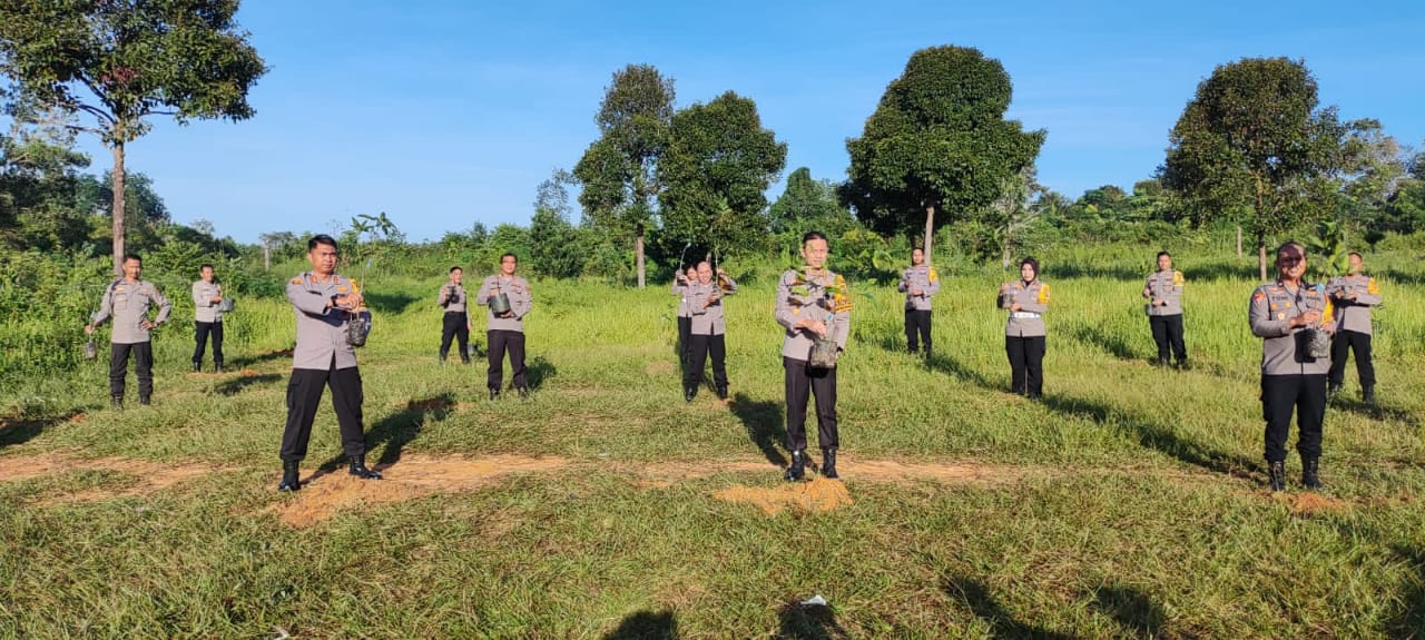 Penanaman pohon serentak dipimpin langsung Kapolresta Pangkalpinang Kombes Pol. Gatot Yulianto, S.IK M.HP didampingi Wakapolresta Pangkalpinang AKBP Rendra Oktha Dinata, S.IK M.Si, Kabag, Kasat, Kasi dan personel Polresta Pangkalpinang.