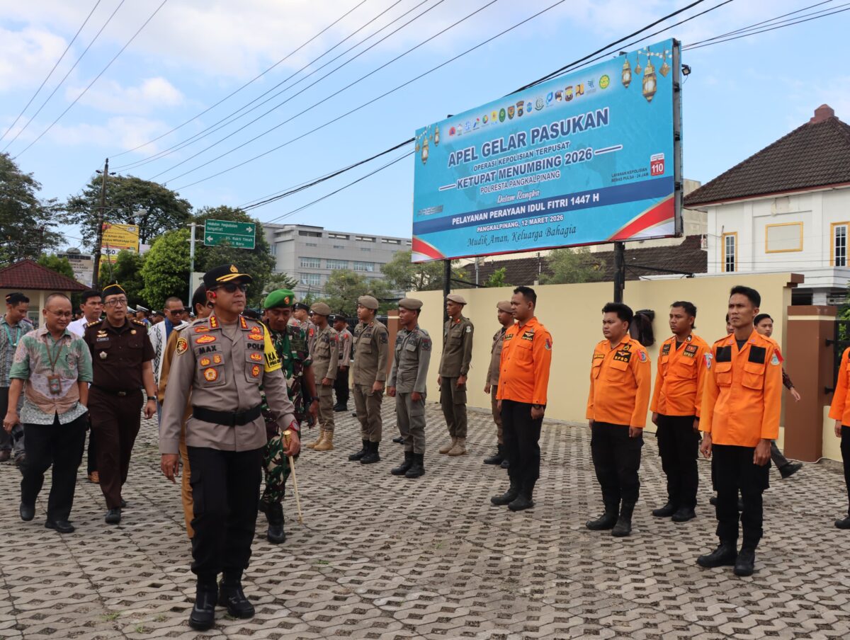 PANGKALPINANG – Polresta Pangkalpinang menggelar Apel Gelar Pasukan Operasi Ketupat Menumbing 2026 pada, Kamis (12/3/26) pukul 16.00 WIB di halaman Mako Polresta Pangkalpinang sebagai bentuk kesiapan pengamanan arus mudik dan balik Idul Fitri 1447 H.