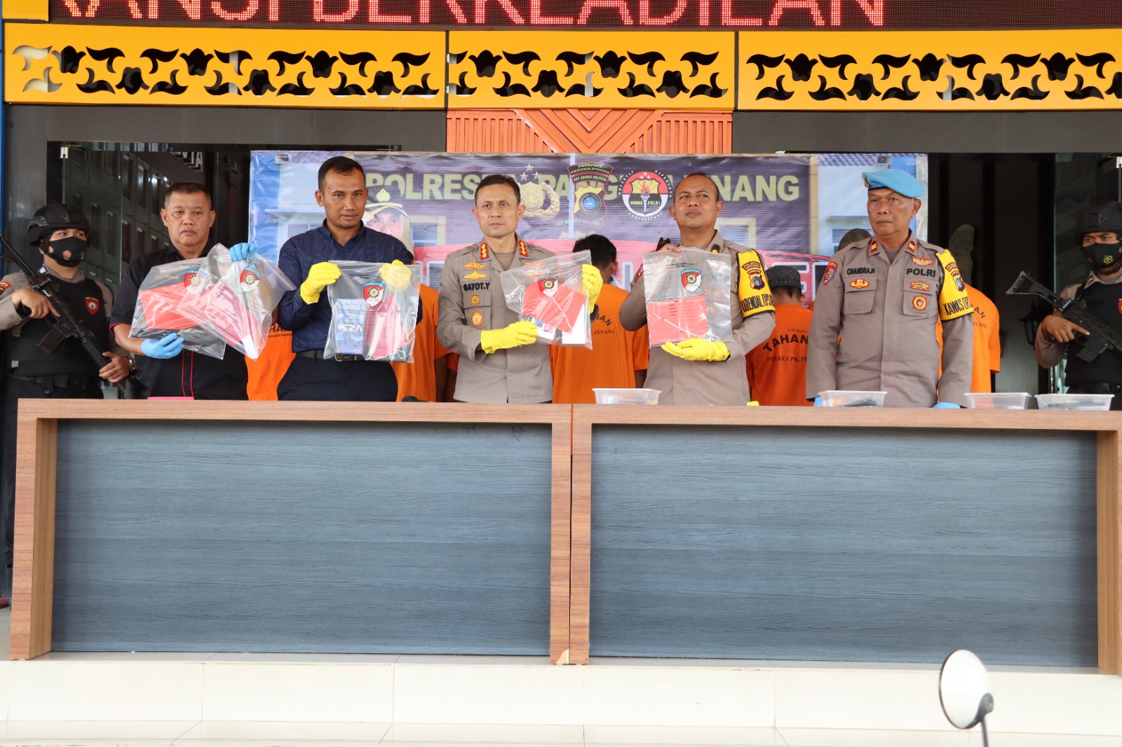 Didampingi Kabag Ops Polresta Pangkalpinang KOMPOL Toni Susanto S.H, Kasi Humas AKP Agus Widodo, Kasi Propam IPTU Chandra dan Kanit Ident IPDA Widodo bertempat di halaman Mapolresta Pangkalpinang. Kapolresta memaparkan di depan awak media ungkap kasus Tindak Pidana Umum dan Tindak Pidana Penyalahgunaan Narkotika.