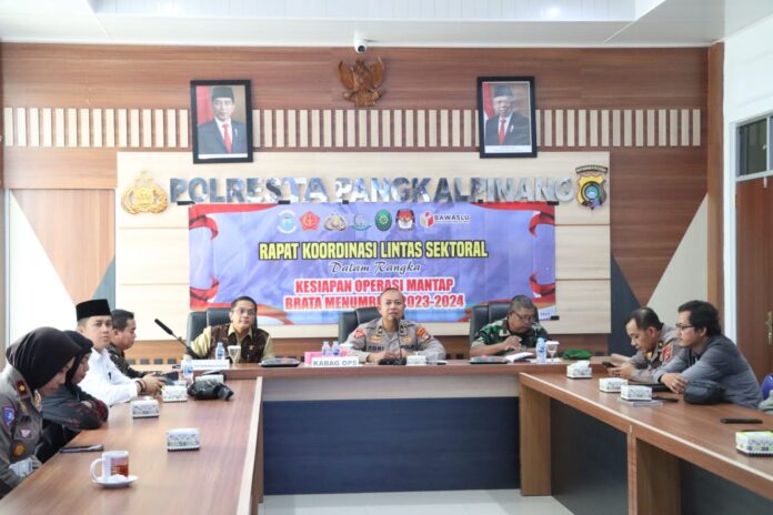 Humas Polresta Pangkalpinang Id – Menjelang pelaksanaan pesta demokrasi bagi bangsa Indonesia, Polresta pangkalpinang melaksanakan rapat koordinasi lintas sektoral operasi kepolisian terpusat dengan sandi “MANTAP BRATA MENUMBING 2023-2024” dalam rangka melaksanakan pengamanan pemilu tahun 2024 dengan damai di wilayah hukum Polresta Pangkalpinang. Jumat (6/10).