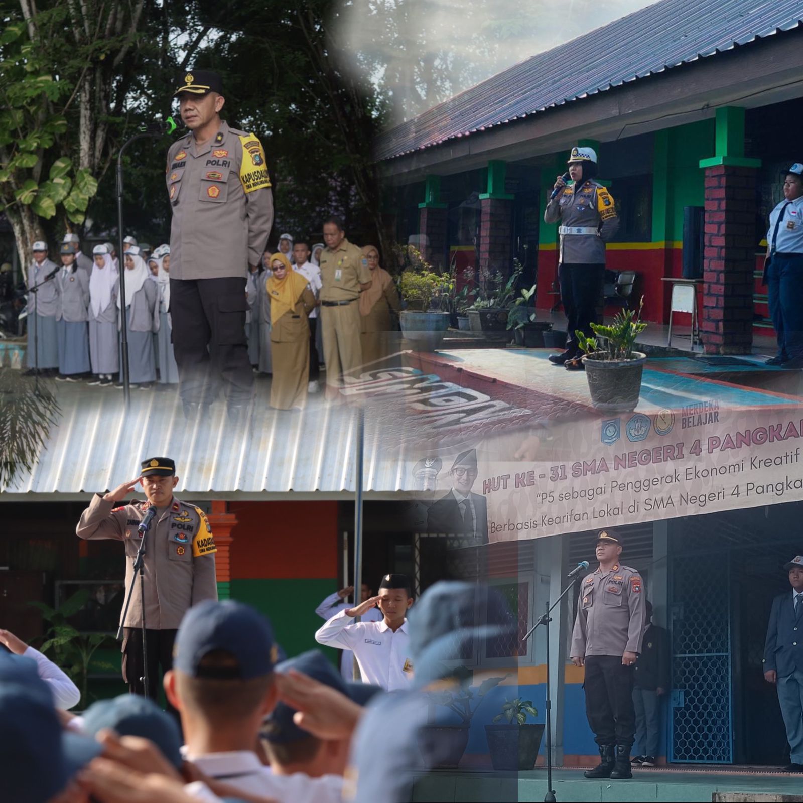 Sekolah yang dikunjungi dan pejabat yang menjadi irup antara lain, SMPN 7 Pangkalpinang irup Kabag Ops Polresta Pangkalpinang Kompol Toni Susanto, SH, SMAN 1 irup Kabag SDM Polresta Pangkalpinang Kompol Junaidi, S.H, SMPN 9 Pangkalpinang  irup Kasat lantas Polresta Pangkalpinang  Kompol Dwi Purwaningsih, S.H, SMPN 5 Pangkalpinang irup Kasat Polair Kompol Kardinata, SMAN 2 irup AKP Mursalim, SMAN 3 Pangkalpinang  irup  AKP Sri Mulyana, SMKN 1 Pangkalpinang irup AKP Antoni Saputra, SMAN 4 Pangkalpinang irup AKP Agus Prasatiawan,  SMKN 4 Pangkalpinang irup AKP Achmad Haris Sanjaya, MAN 1 Pangkalpinang irup AKP Yosyua Surya  Admaja, SMKN 5 Pangkalpinang irup AKP Ferry Gunadi, SMPN 3 Pangkalpinang irup AKP Chandra Harsono, SMAN 1 Pangkalan Baru  irup IPTU Taufan Arif N, SMA PGRI Pangkalpinang irup IPTU Suhendar, dan SMPN 1 Pangkalpinang IPTU Ida Ketut Artha.