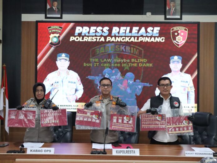 PANGKALPINANG – Polresta Pangkalpinang menggelar press release pengungkapan kasus peredaran narkotika yang terjadi di wilayah Kota Pangkalpinang, Kamis (5/3/2026).