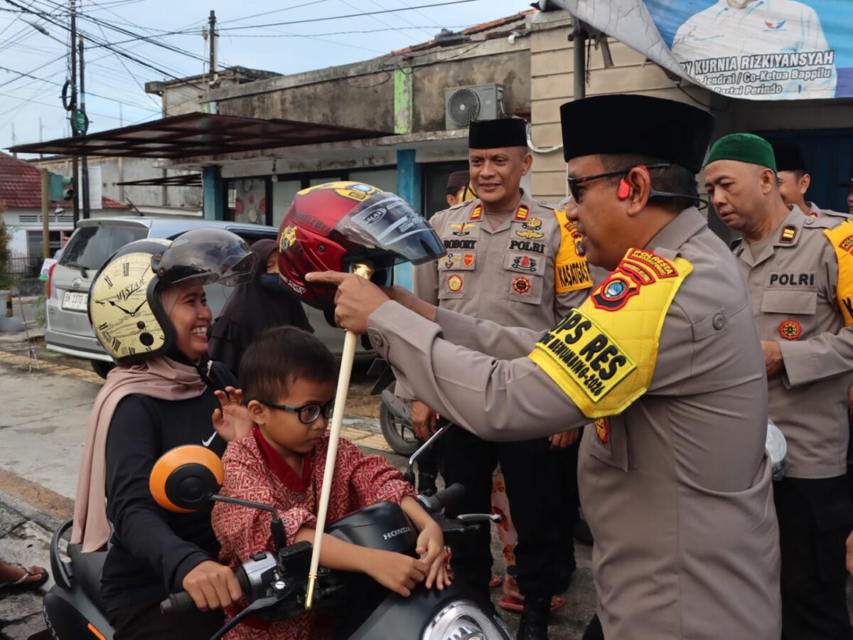 Selain membagikan takjil, Kapolresta Pangkalpinang bersama pihak Jasa Raharja juga membagikan helm gratis kepada sejumlah pengendara sebagai bentuk kepedulian terhadap keselamatan berlalu lintas.