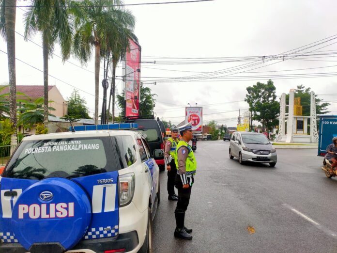 Humas Polresta Pangkalpinang Id – Antisipasi gangguan keamanan dan lalulintas Satgas Kamseltibcarlantas Operasi Mantap Brata Menumbing Polresta Pangkalpinang melaksanakan Patroli dan pengaturan di lokasi obyek Pemilu dan rawan macet di Kota Pangkalpinang. Selasa (9/1).